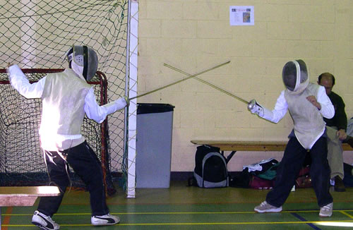 Youngsters continuously practice electric fencing matches.